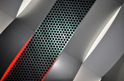 Controsoffitto realizzato con pannellature in alluminio calandrato postverniciato e pannelli centrali piani forati a laser. Retrostruttura nascosta modello Zeta System di Atena realizzata con profili Z appositamente pressopiegati in funzione del raggio di curvatura dei pannelli concavi. Sistema di irrigidimento dei pannelli con centine interne. Opalini satinati bianchi e rossi per la diffusione della luce. Illuminazione strip led.